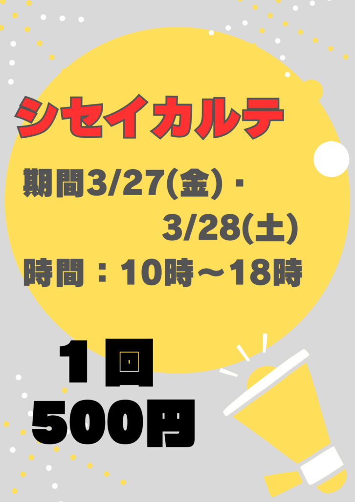 ・実施日時 3月27(金) 28(土) 10:00~18:00