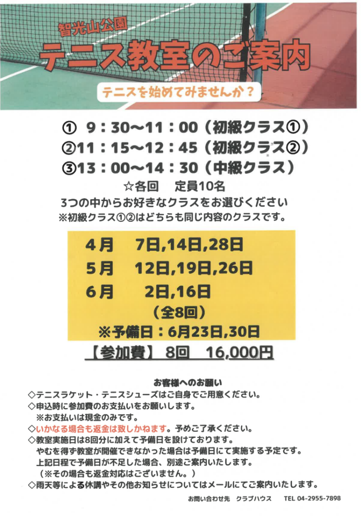 4月開講テニス教室のおしらせ