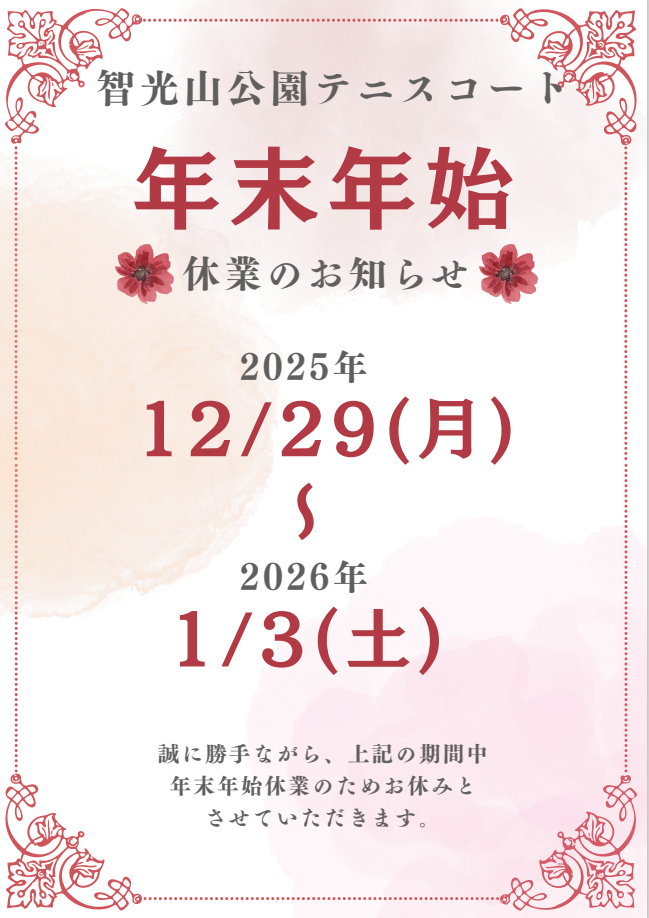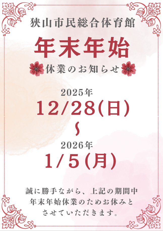狭山市民総合体育館と智光山テニスコートでは、休館日が異なりますのでご注意ください。